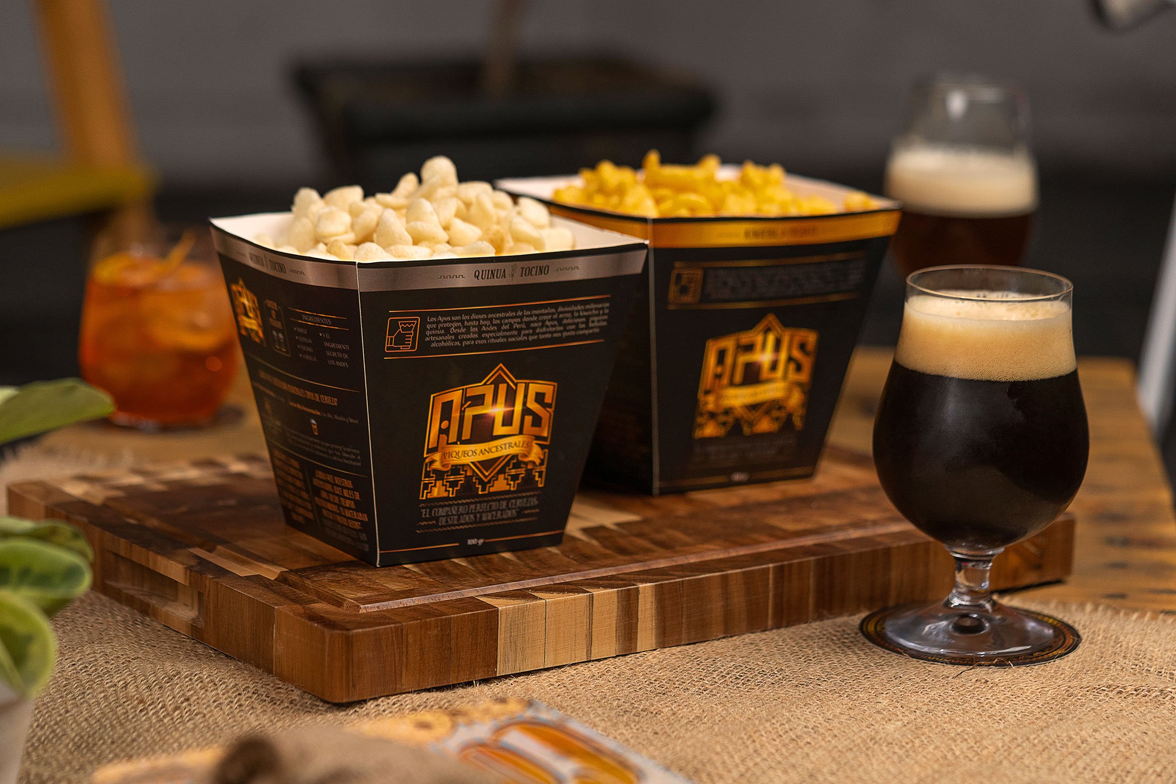 El trabajo de branding fue desarrollado por la agencia creativa Pimienta – experiencia de marcas, la cual estuvo a cargo del naming, brandbook, packaging y la campaña de lanzamiento y contenido. Apus es el trabajo final de un proyecto que lleva en desarrollo un periodo de 1 año y que finalmente se estrena en el mercado peruano en enero de 2021 con una estrategia digital que pretende atraer a los consumidores del Perú.