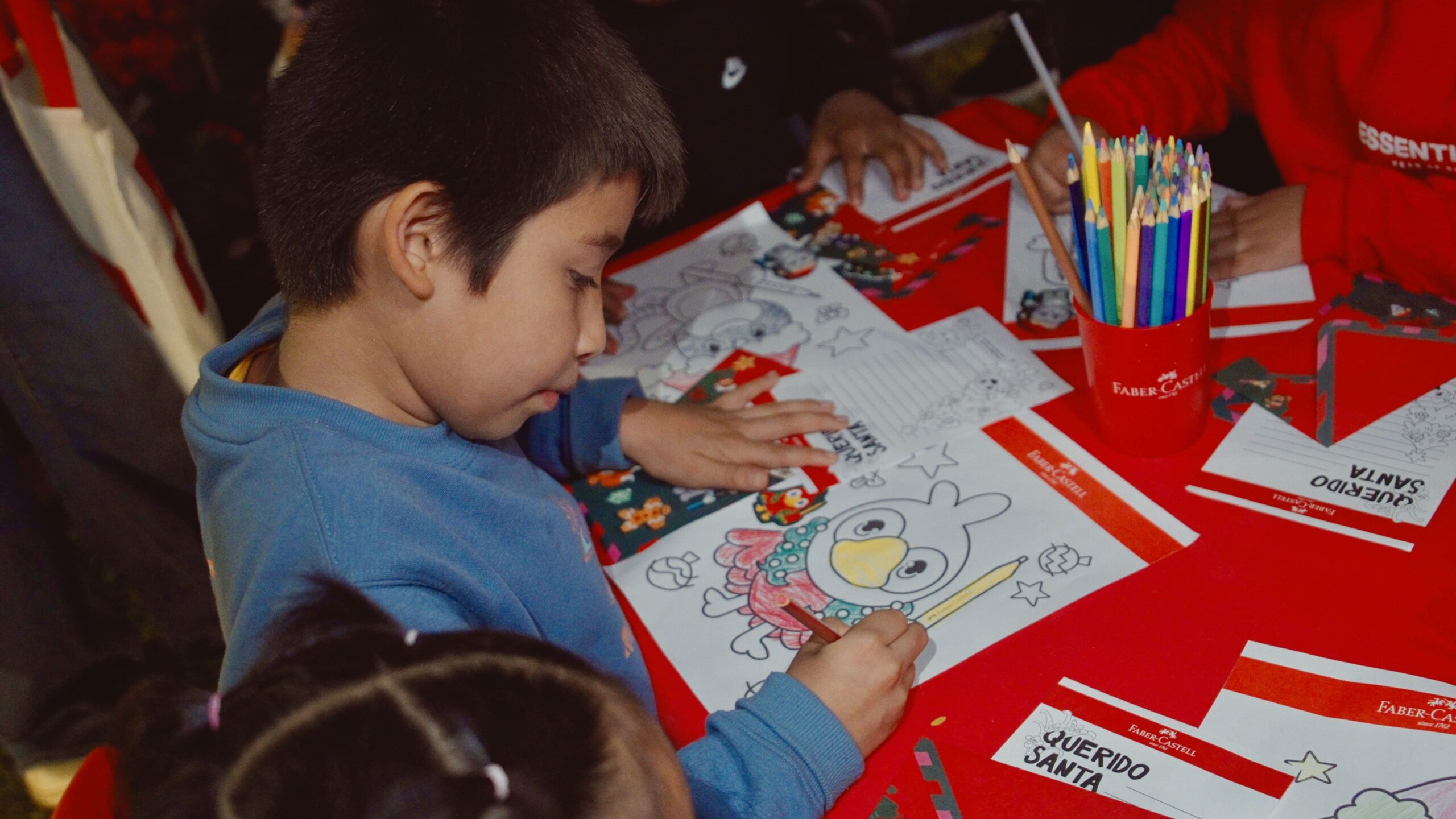El mensaje se amplifica a través de un video de campaña que invita a no olvidar los colores y plumones al momento de preparar las cartas navideñas, colocando a los niños como protagonistas del proceso creativo y reforzando el vínculo emocional que nace al crear para otros.