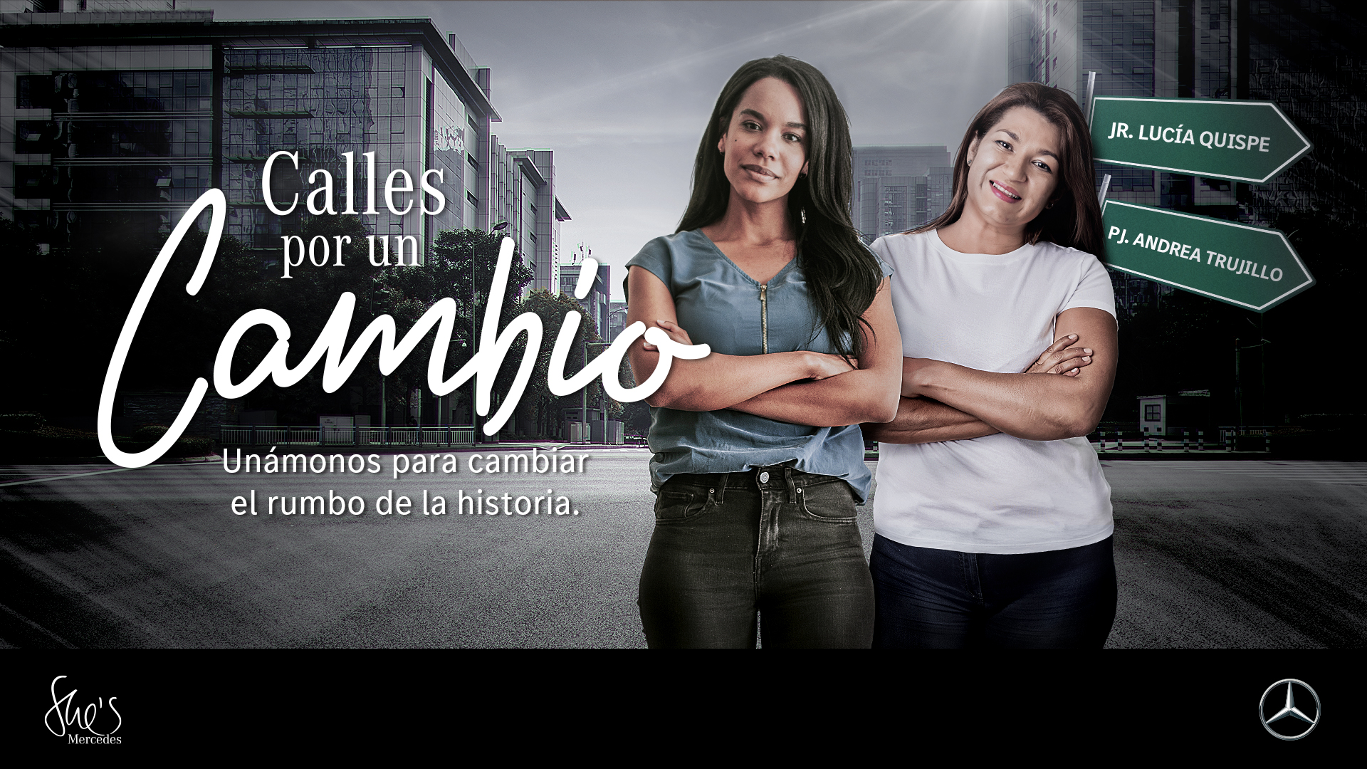 Según estudios realizados, de más de 13 mil calles de la ciudad, solo el 3.3% de ellas tienen nombres de mujer; frente a un 28.7% con nombres de hombre. Para ser precisos, más de 8 calles tienen nombre de hombre por 1 calle de mujer. En base a ello, Mercedes-Benz y su plataforma She’s Mercedes buscan que junto a todos los actores interesados como sociedad civil, instituciones, líderes, entre otros, se pueda lograr el cambio real, modificando algunas calles de Lima a nombres de mujeres.
