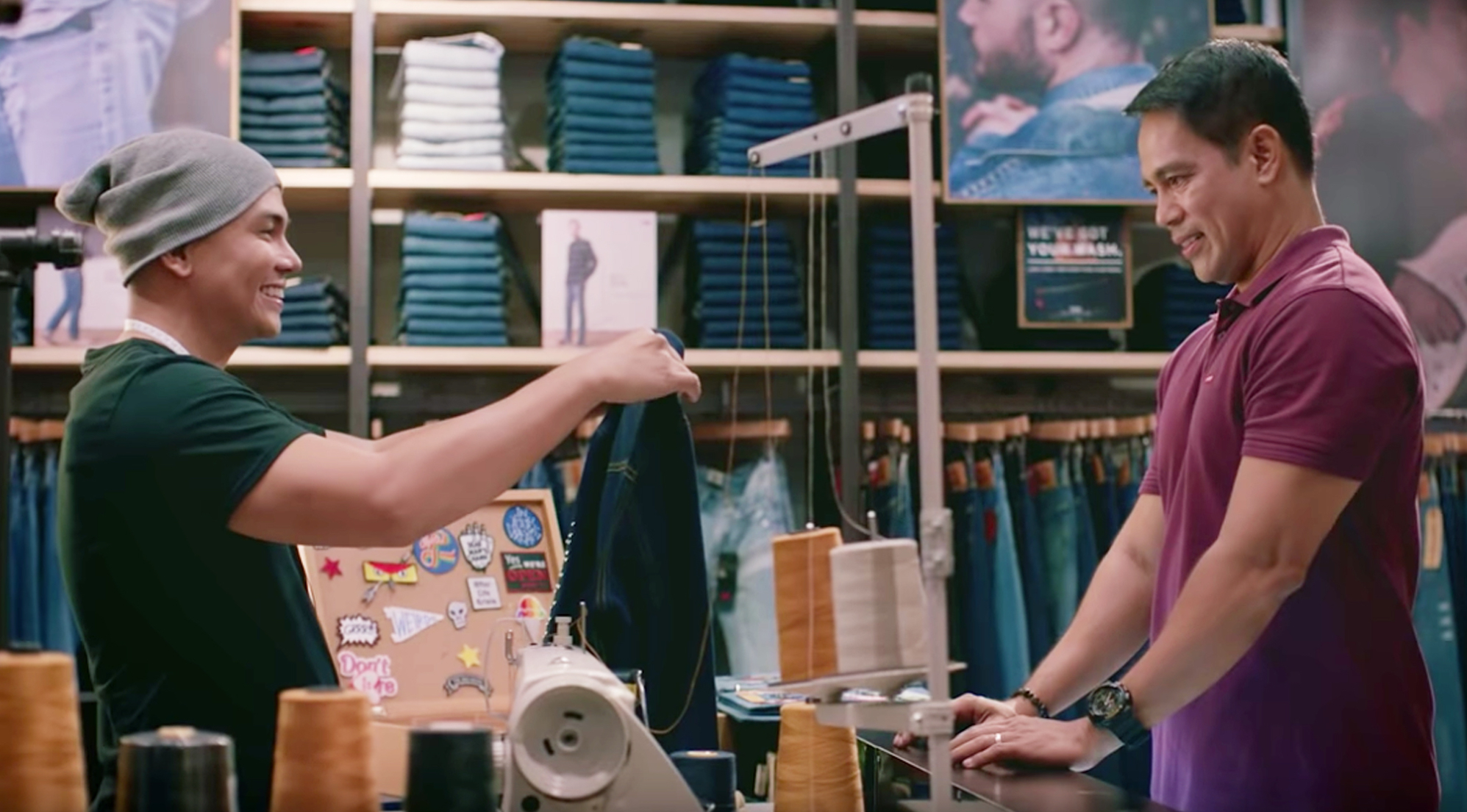 Cuenta la historia de un hombre que camina por un centro comercial hasta que ingresa a una boutique Levi´s interesado en adquirir una chaqueta de mezclilla luego de verla con curiosidad en la vitrina. Al sastre que ofrece el servicio de customización de piezas le indica que no quiere parches ni decoraciones estrafalarias, solo posicionar algunos botones sencillos en sitios específicos. Y así se cumple la solicitud.