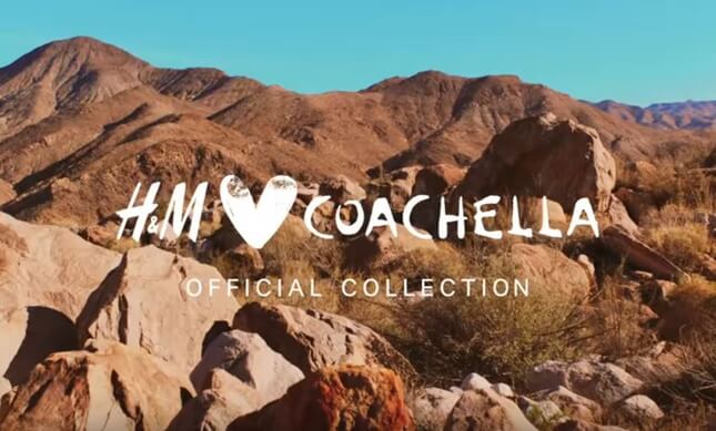 Así pues, H&M se asoció al festival Coachella y cada año saca una colección exclusiva del mismo nombre. La campaña es anunciada en medios bajo el hashtag #H&MlovesCoachella. De esta manera, la marca se asegura de cubrir la demanda de micro shorts, tops con flecos, blusas folk…