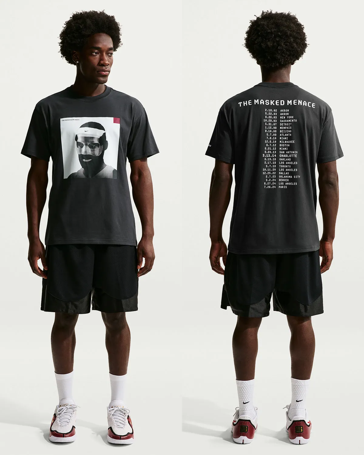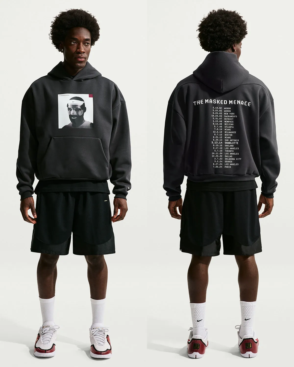 La nueva colección consta de una t-shirt y una sweatshirt con capucha con la imagen de LeBron James durante su famosa etapa con una máscara protectora de fibra de carbono mientras jugaba para los Miami Heat en 2014. El diseño de “Masked Menace” presenta incluso una tipografía similar y un pequeño cuadrado de color, como en la portada original.