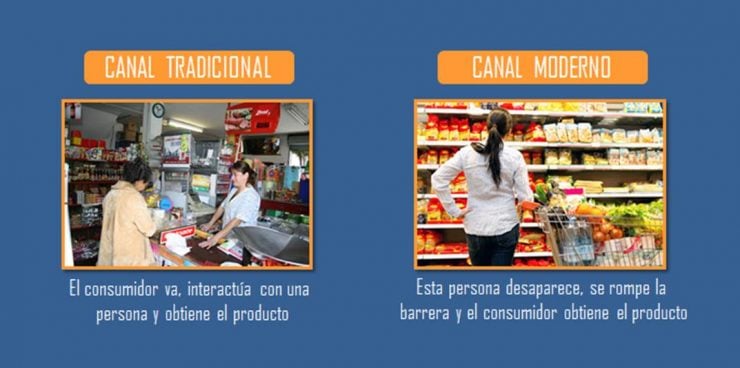 En algún momento se la historia se estableció que había en el mercado un canal tradicional y un canal moderno, este quiebre se dio con el surgimiento de los Autoservicios (AA.SS.), un lugar donde se rompe la manera tradicional de vender que era cuando un consumidor va a un Punto de Venta y le pide a alguien lo que necesita, por ejemplo las bodegas, los kioskos o los mercados. El consumidor va, interactua con una persona y obtiene el producto, a esto se le llama Canal Tradicional. Con el surgimiento del Autoservicio, esta persona desaparece y el consumidor tiene un acceso de manera libre a una variedad de productos, por ejemplo los supermercados, cash & carry o tiendas por conveniencia, a este se le llama Canal Moderno.