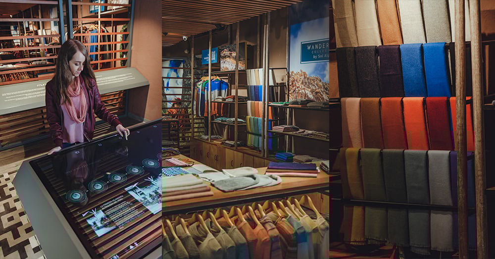 Una ruta interactiva llena de conocimiento sobre la fibra de Alpaca, sus propiedades, composición, colores y procesos artesanales, desde la extracción, hasta el producto final, mostrando toda la transformación industrial de la empresa, que parte de prácticas tradicionales llevadas a cabo por las manos de mujeres peruanas.