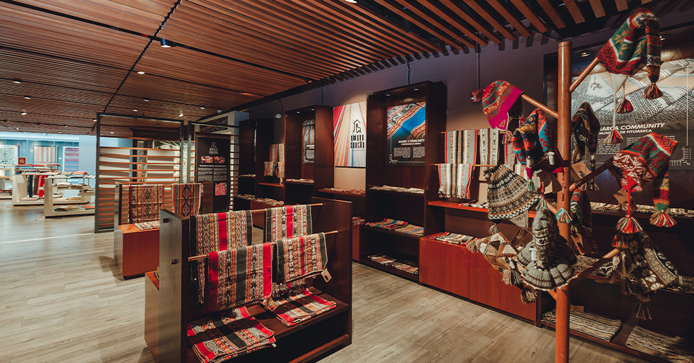 Para complementar la experiencia de la Alpaca, los visitantes pueden descubrir y adquirir las delicadas prendas y accesorios confeccionados con fibra de Alpaca y Vicuña. Estas prendas, que pertenecen a exclusivas marcas como Sol Alpaca y Awanakancha, cuentan con diseños inspirados en las hermosas formas y enigmáticos tejidos de las antiguas culturas peruanas, resaltando el inigualable legado textil que le precede a la industria.