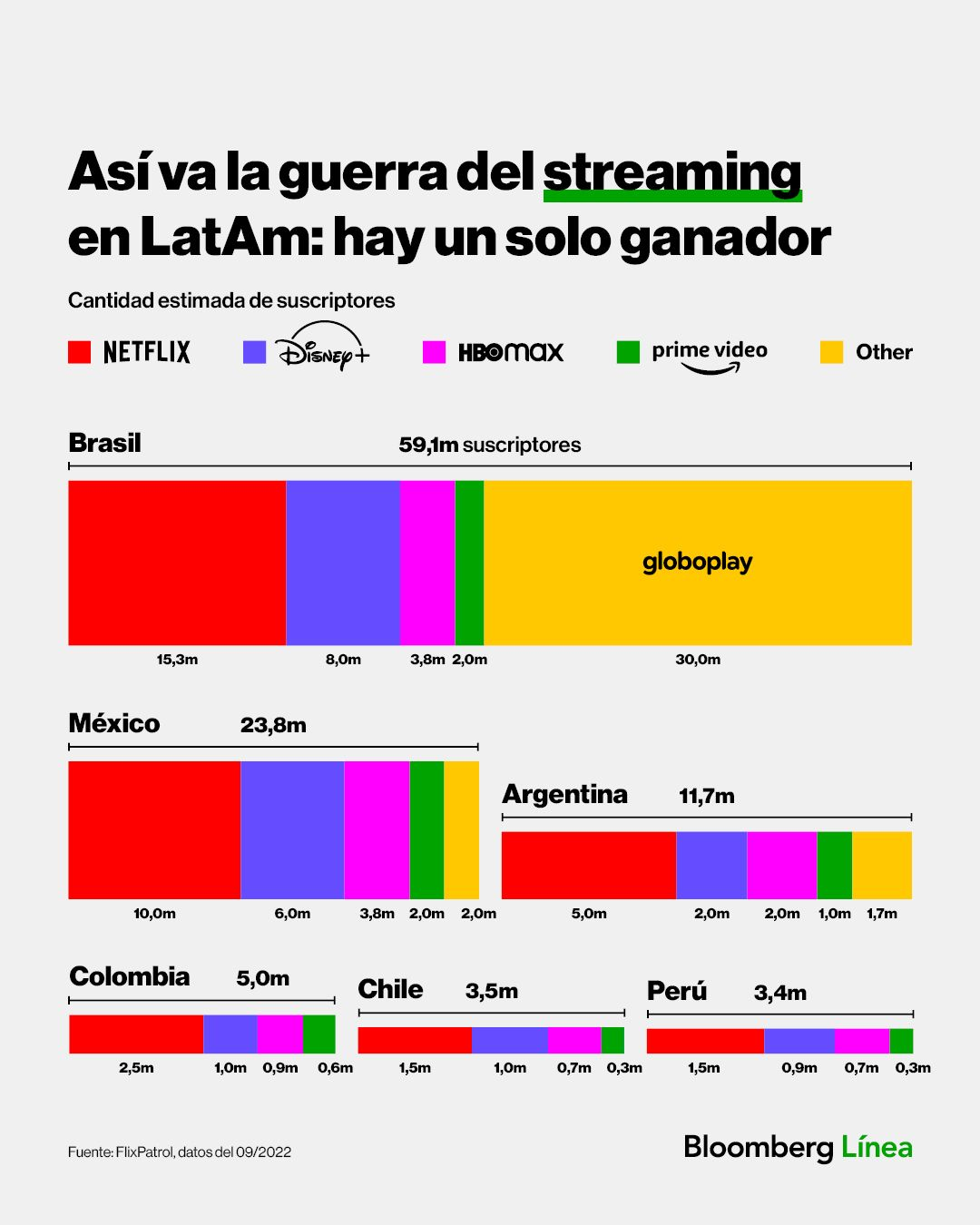 De acuerdo con Bloomberg Línea, Netflix sigue teniendo la mayor cantidad de suscriptores en Perú, Chile, Colombia, Argentina y México.