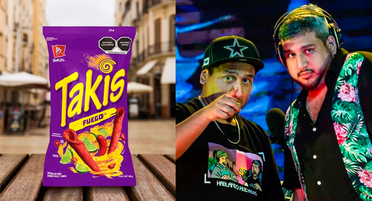 Ricardo Mendoza y Jorge Luna, famosos por su exitoso espectáculo cómico «Hablando Huevadas», sorprendieron a su audiencia en el Teatro Canout el pasado domingo 1 de octubre al revelar su primer patrocinador en la historia del show: la reconocida marca de snacks picantes, Takis.