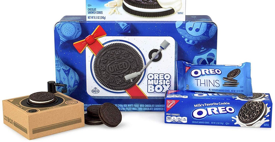 La Oreo Music Box está a la venta en Amazon por 19,99 dólares y viene acompañada en una lata de metal con motivos navideños y paquetes de galletas.