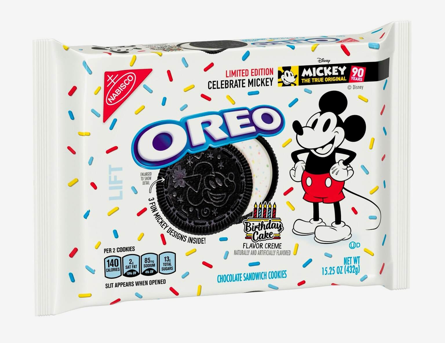 Es así que la galleta de Mondelez Internacional, Oreo, ha lanzado una edición limitada para celebrar el aniversario de Mickey Mouse. El sabor elegido para esta edición fue “Torta de cumpleaños”, que incluye grajeas de colores dentro de la crema de la galleta.