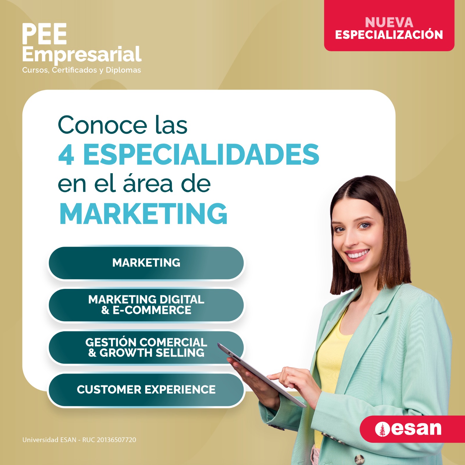 En ese sentido, el PEE Empresarial de ESAN está orientado a los profesionales que se desempeñan en las siguientes áreas: Administración, Finanzas, Operaciones y logística, Marketing y Tecnología de la información. Cada una de estas áreas tiene de tres a cinco especialidades.