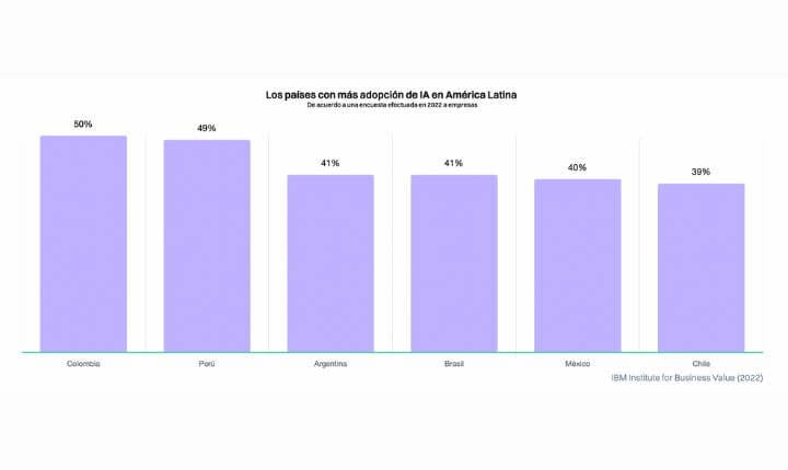 Dicha investigación analizó el contexto de la IA en la región, resultando Perú con la segunda mayor cuota de mercado (49%). En tal sentido, nuestro país se encuentra superado por Colombia con un 50%. El Top 5 lo completan Argentina (41%), Brasil (41%) y México (40%).