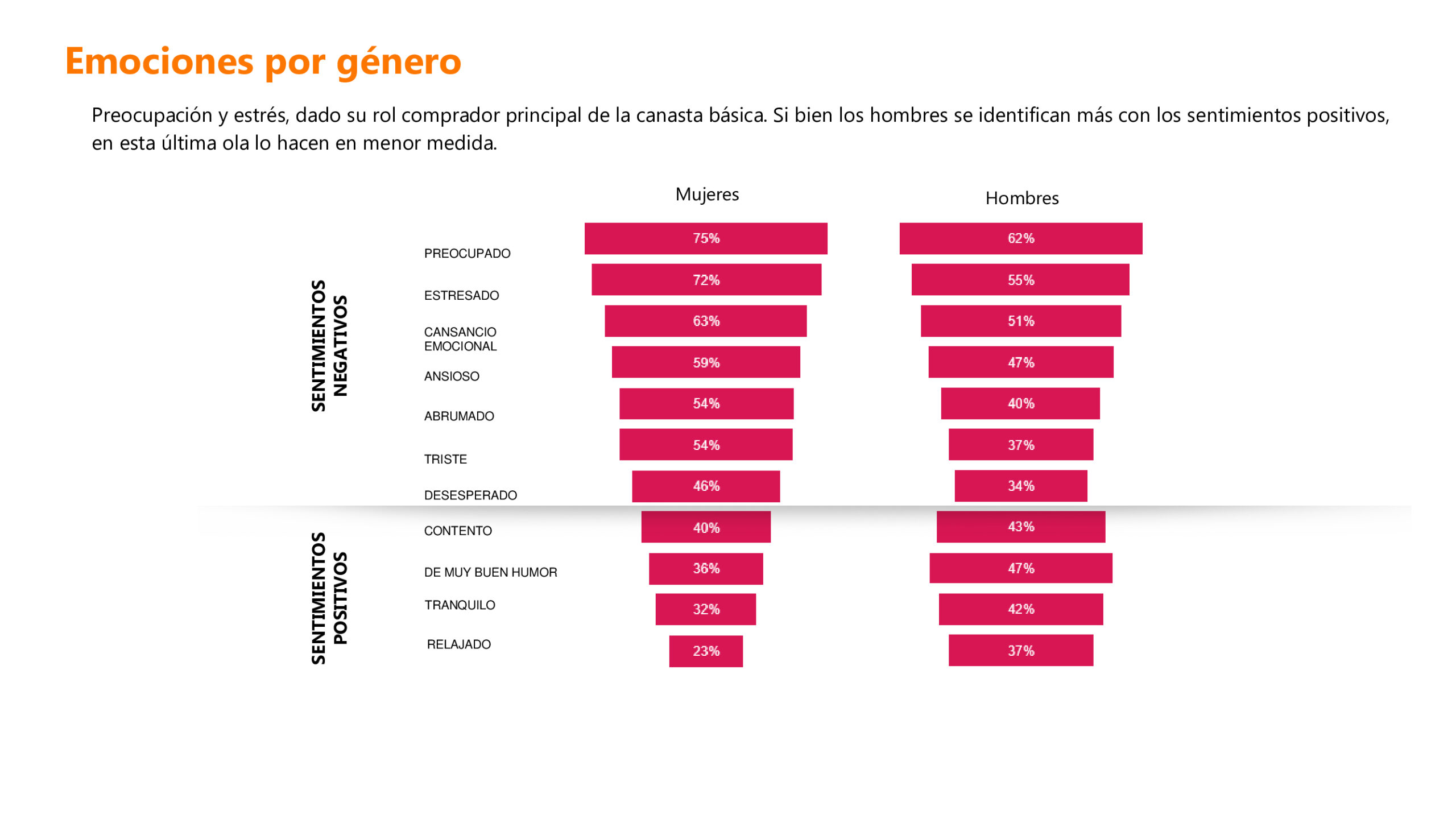 “Hay un pequeño porcentaje de hombres que considera que la situación está mejor, y esto es como si nosotros viéramos los roles dentro de los hogares: la mujer es la administradora, la que tiene que solventar de una manera inteligente los gastos, mientras que el hombre necesita mantener la calma, tranquilizar las aguas, siempre intenta ver el lado bueno porque está esperando una mejora económica en algún momento”, detalla Niño.