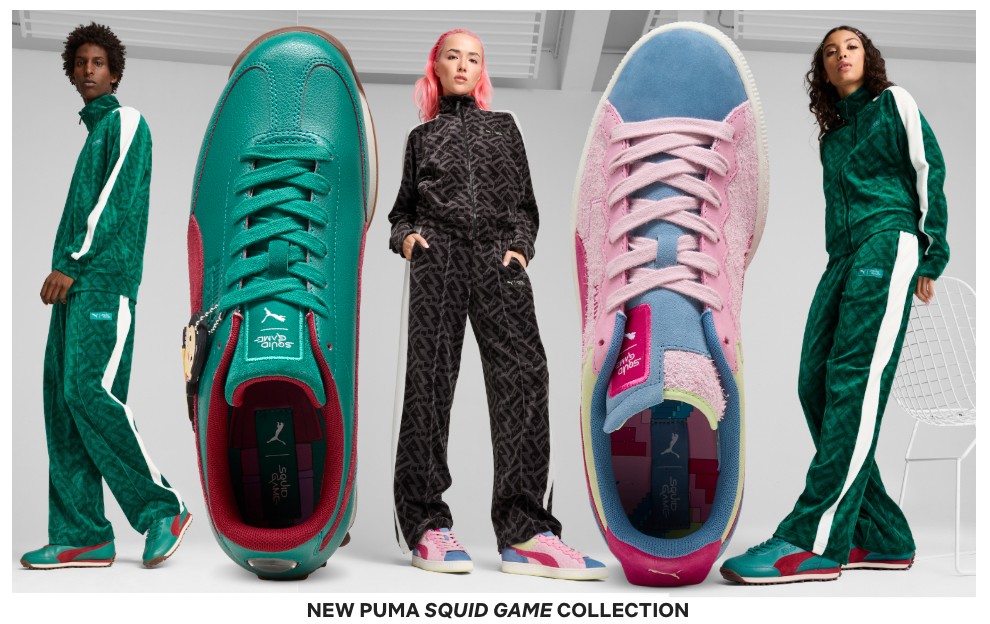 La reconocida marca deportiva alemana, PUMA, ha lanzado una colección limitada de productos inspirados en la temporada 2 de la serie de Netflix ‘El Juego del Calamar’.