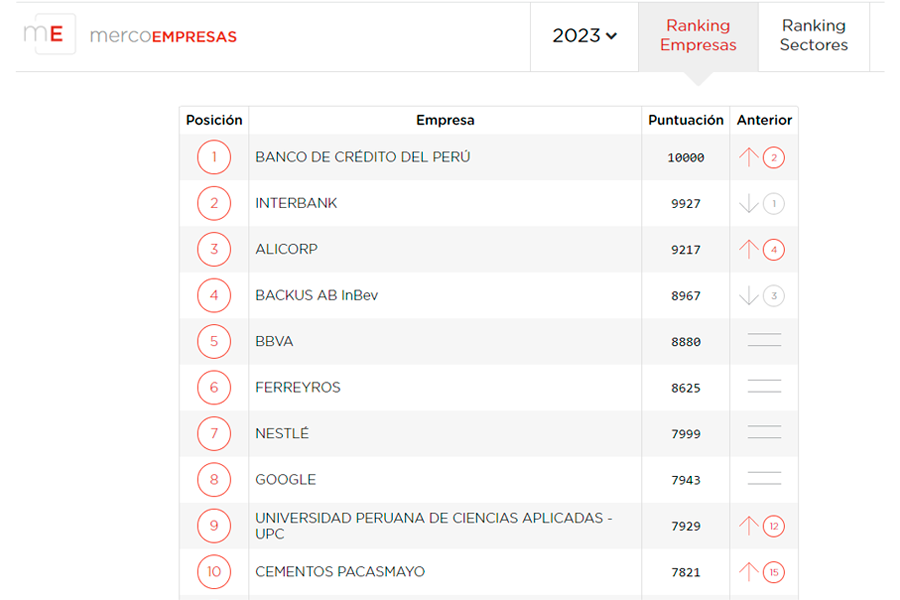 El Monitor Empresarial de Reputación Corporativa (MERCO) ha anunciado su duodécima edición del ranking de las 100 empresas más destacadas en términos de reputación en el Perú durante 2023.