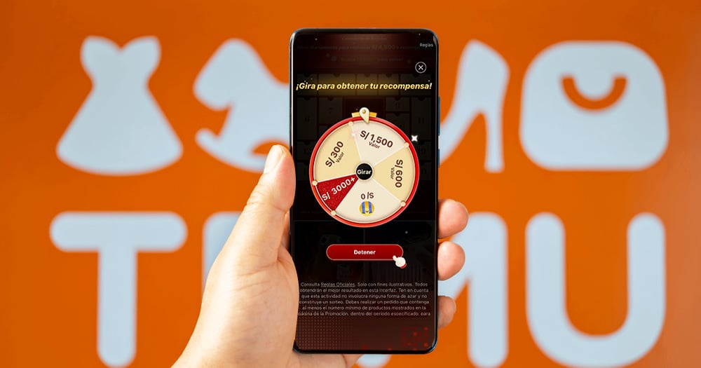 Temu utiliza en su plataforma dinámicas de “gira y gana”, ruletas promocionales que ofrecen beneficios como parte de su estrategia para incentivar la actividad del usuario. Estas mecánicas forman parte de un sistema donde el incentivo guía la interacción dentro del ecosistema digital.