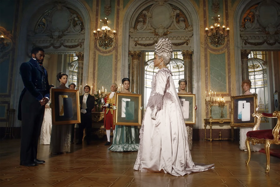 Como parte de la estrategia la fabricante coreana realizó con la productora Shondaland un spot en el que reunió a parte del elenco de la serie Bridgerton, protagonizado por Golda Rosheuvel, quien repite su papel de la reina Charlotte.