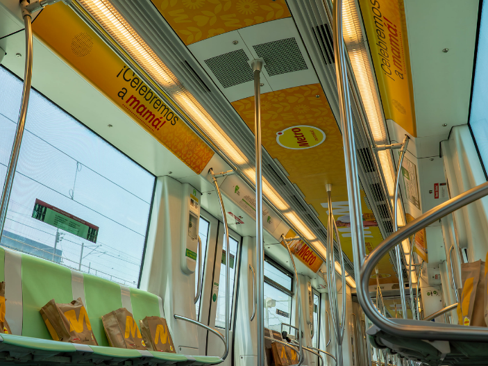 El vagón, personalizado por fuera y por dentro, pasará por distritos en donde se ubican 12 tiendas Metro, creando un ecosistema que acompaña al cliente desde el trayecto hasta sus tiendas. Con una proyección de 18 millones de impactos, la marca asegura que el mensaje de gratitud y ahorro llegue a cada rincón de la ciudad.