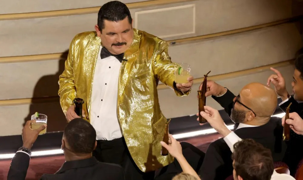 El momento en que la bebida se apoderó de las cámaras ocurrió durante un sketch entre Jimmy Kimmel, conductor de la gala, y su colega de late night, Guillermo Rodríguez. Este personaje invitó a todos los asistentes a celebrar con lo que más ama: el tequila, pero no cualquier tequila.