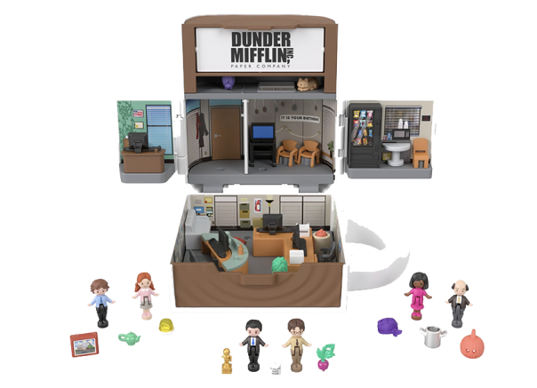 Por ello, la línea Polly Pocket vendida por Mattel Inc., ha desarrollado una edición limitada del espacio de trabajo en el que se centra el programa. El set compacto, con la forma de la taza de Michael que dice “World’s Bests Boss”, tiene seis muñecos y nueve accesorios que pueden ser colocados en seis distintos lugares.