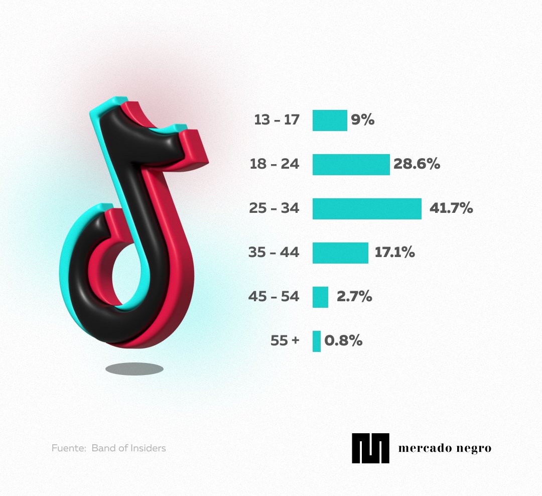 No obstante la audiencia de TikTok, que se asocia mucho a los más jóvenes, es mucho más diversa. Y es que según un análisis de Brand of Insiders, el grupo de usuarios más grande, con el 41%, tiene entre 25 y 34 años, lo que demuestra que la plataforma ha captado la atención de un público adulto con mayor estabilidad profesional y económica.