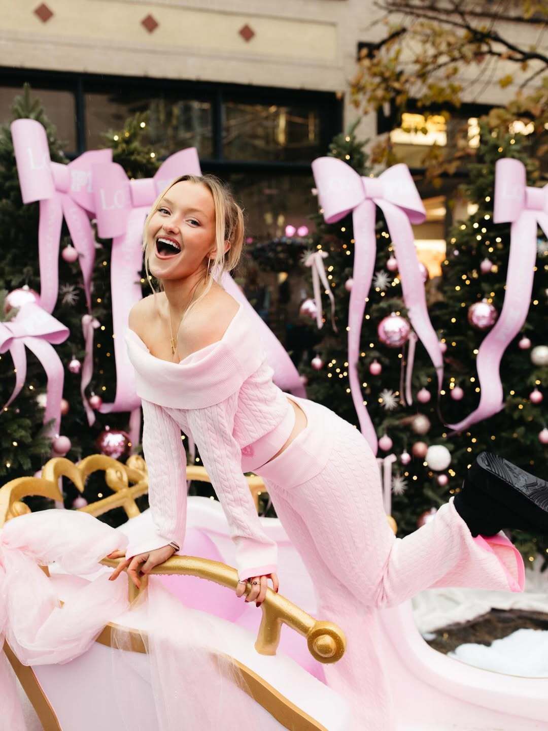 En una temporada donde el lanzamiento compite con cientos de drops simultáneos, la experiencia se vuelve el verdadero diferencial. Bajo esa lógica, Victoria’s Secret PINK y LoveShackFancy llevaron su segunda colaboración un paso más allá con una activación navideña que trasladó el universo de la cápsula al espacio urbano de Nueva York.