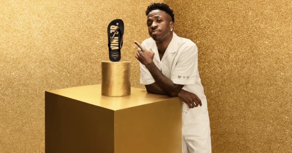 El futbolista del Real Madrid es la nueva imagen de la marca brasileña, junto a la cual ha lanzado tres modelos de sandalias. Como parte de la campaña, Havaianas anunció una preventa exclusiva en la ciudad natal de Vinicius Jr.: São Gonçalo.