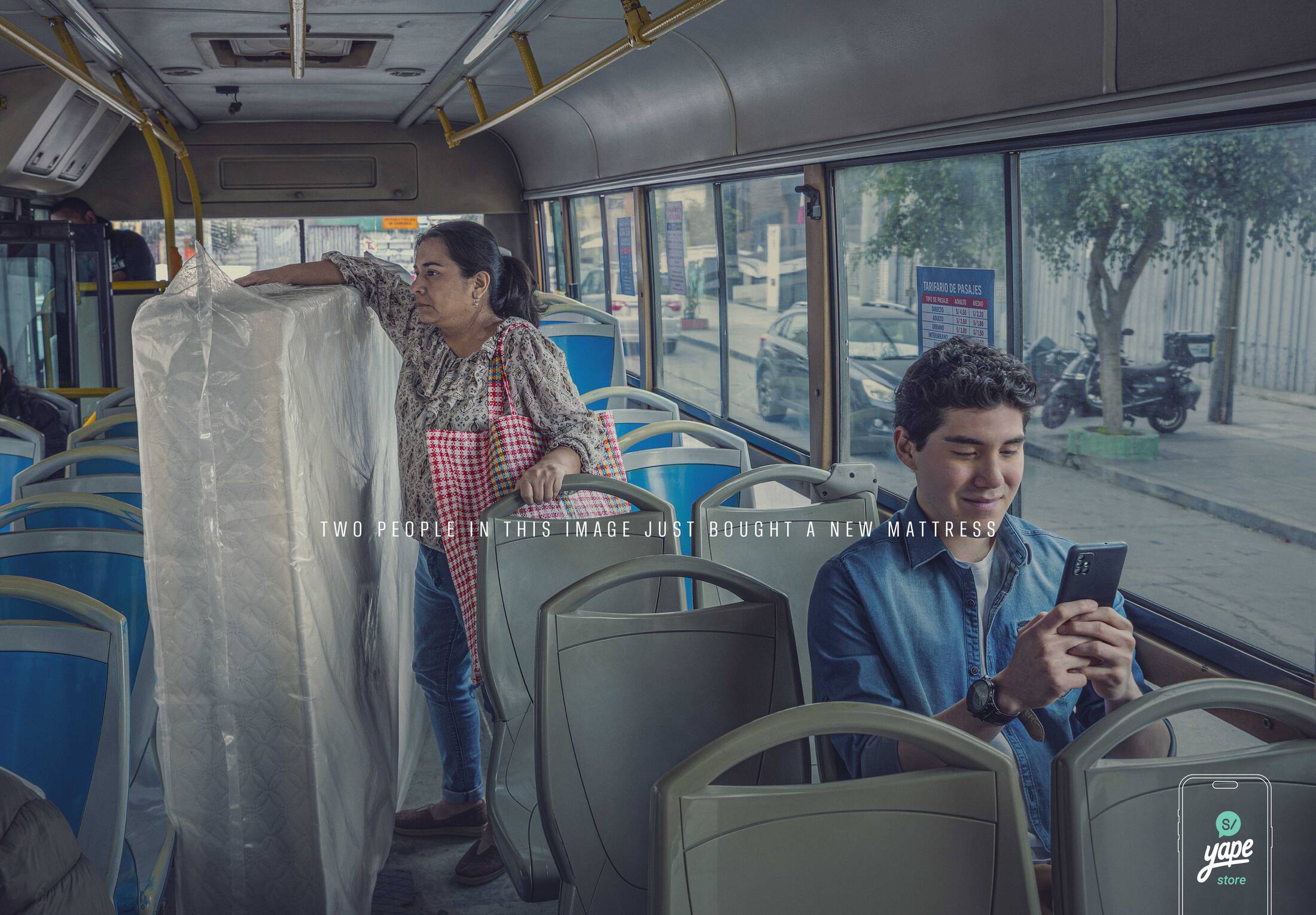 Desde una joven usando el móvil en un bus al lado de otra que carga un colchón en el mismo espacio, hasta una chica evaluando comprar un móvil en su auto mientras otros transportan de forma arriesgada una lavadora en la parte posterior de un auto, son algunas de las piezas con las que dejan claro el mensaje de su propuesta titulada «Recién comprado».