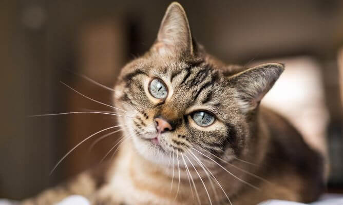 Con un pelaje blanco y ojos amarillos, este gato destaca por las dos manchas que tiene arriba de los ojos, las cuales se asemejan las cejas de un humano.