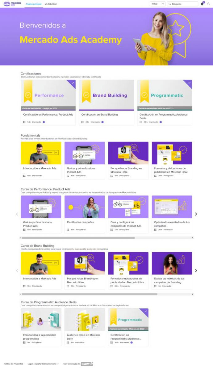 Los contenidos que Mercado Ads Academy pone a disposición de los usuarios, cuentan con una experiencia interactiva con ejemplos, videos explicativos e información estratégica. De esta forma se dirigen hacia las agencias, vendedores y estudiantes para capacitarse en los en un formato 100% online y gratuito, adaptándose a las necesidades de tiempo del estudiante.