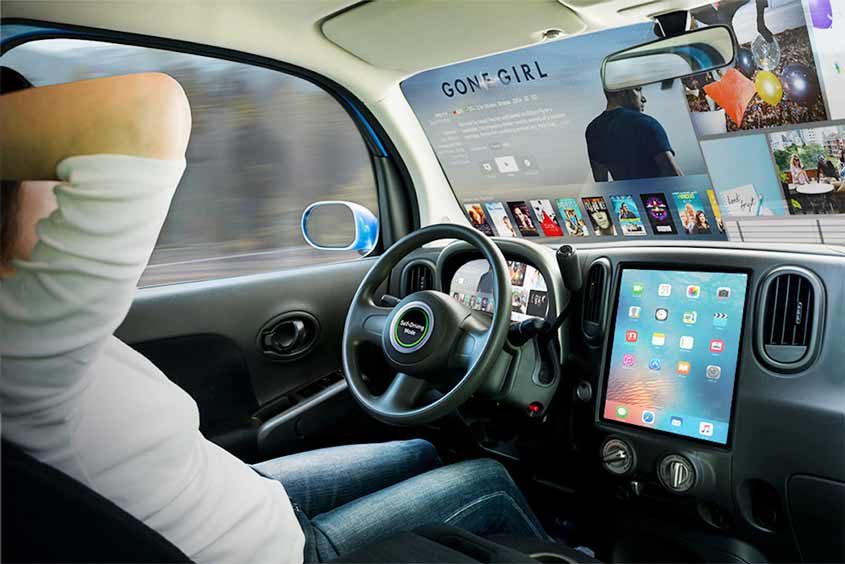 Y es que gracias a que los vehículos autónomos se conducen solos, es decir, sin la necesidad de la intervención del humano, los pasajeros podrán dedicarse a un sinfín de actividades durante el trayecto. Esto convertirá al automóvil en un ecosistema de atención donde el parabrisas será el gran protagonista, desde este se proyectará una gran pantalla en la que se consumirá contenidos, además de recibir muchas publicidades.