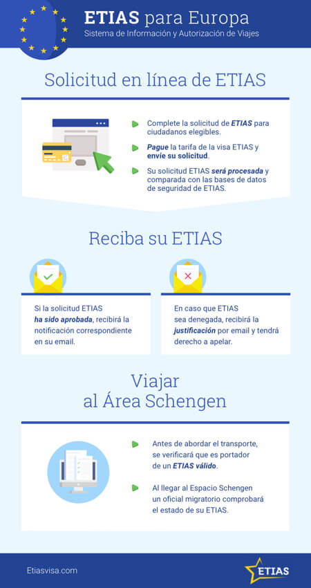 A diferencia de un visado regular, ETIAS puede tramitarse online a través de www.etiasvisa.com. El trámite no toma más de 15 minutos y como norma general se obtiene respuesta a la solicitud en cuestión de minutos. Una vez el registro de ETIAS se haya efectuado de manera exitosa, el sistema emitirá la autorización de viaje y enviará una notificación al solicitante vía correo electrónico.