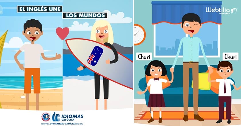 Idiomas Católica, el centro de idiomas de la PUCP, decidió crear personajes propios para usarlos en su contenido digital, en colaboración con la agencia Digital Webtilia.