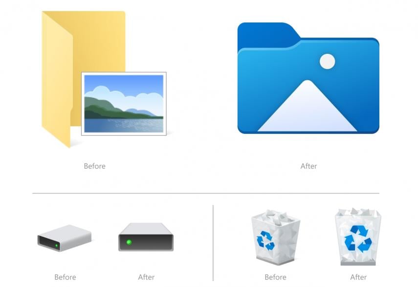 Según explica Microsoft en nota de prensa: «se han realizado varios cambios, como la orientación de los iconos de carpeta y los iconos de tipo de archivo predeterminados, para lograr una mayor coherencia en los productos de Microsoft que muestran archivos. Las carpetas de usuario de nivel superior, como Escritorio, Documentos, Descargas e Imágenes, tienen un nuevo diseño que debería hacer que sea un poco más fácil distinguirlas de un vistazo»