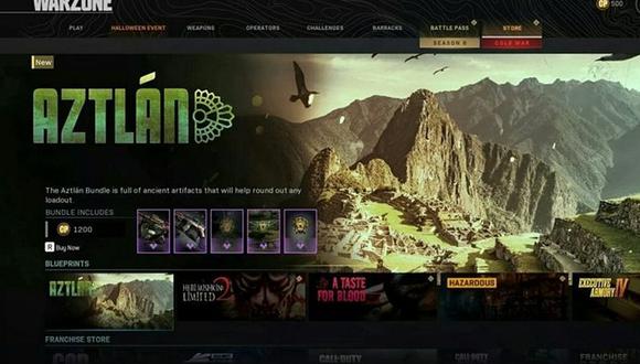 En dicha tienda se hizo la publicación de un bundle con skins de armas y amuletos llamado «Aztlán», que es una representación del imperio Azteca, pero que utiliza, de manera equivocada, la imagen de Machu Picchu para dar a conocer este paquete.