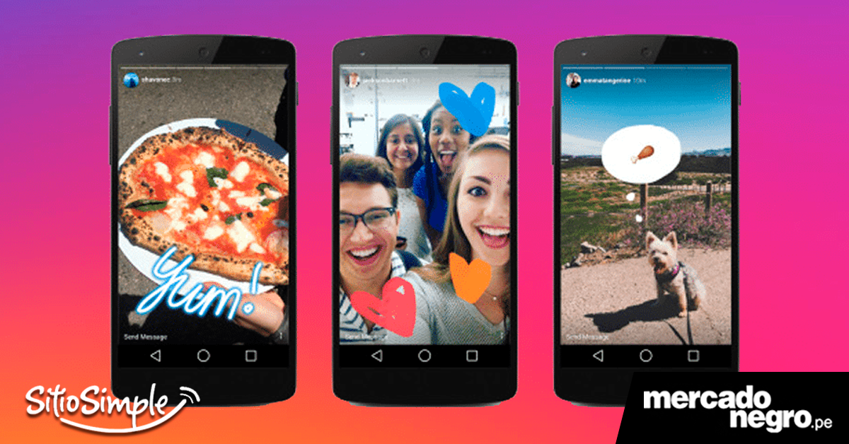 Instagram Stories es una funcionalidad que la red social lanzó en agosto del 2016, donde es posible combinar diferentes videos y fotos, además de utilizar herramientas de dibujo y texto, para armar una historia que desaparecerá luego de 24 horas. La solución tuvo un éxito rotundo, e impulsó el crecimiento de la red social en más de 100 millones de usuarios en pocos meses.