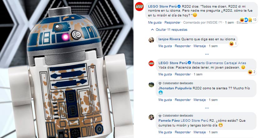 La acción, llevada a cabo con el fin de impulsar la venta de los sets de Star Wars y, al mismo tiempo, anunciar los próximos descuentos, personificó la respuesta de mensajes dentro del fan page de la maca utilizando la voz del recordado personaje, R2D2.