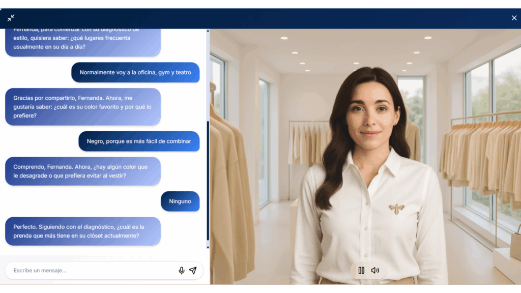 Gracias a esta integración, la asistente virtual no solo asesora, sino también educa, inspira y proyecta profesionalismo, generando una experiencia de cliente inmersiva y cercana.