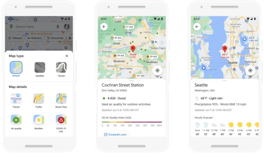 Esta es ua de las actualizaciones interesantes que se trae Maps, pues trata de una información climática y sobre la calidad del aire. La actualización se viene trabajando de la mano con The Weather Company y AirNow.gov. La primera estará encarga de brindar la situacion meteorológica de los lugares más buscados por los usuarios.