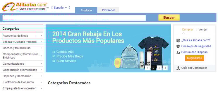 Le llaman el minorista más grande de China y actúa como un intermediario, pues te deja vender tus productos bajo la modalidad directa o por subastas e incorpora el sistema de pagos AliPay. Su enfoque es de ventas masivas y asequibles por lo que los altos precios no abundan mucho en esta plataforma.