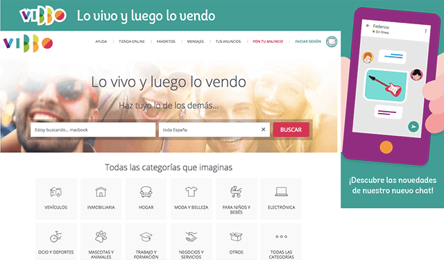 Con su lema “Lo vivo y luego lo vendo” el marketplace ofrece un servicio de anuncios clasificados a los que accede miles de personas al año. La ventaja de Vibbo para vender por internet gratis es que ahora forma parte de Milanuncios y te da la opción de publicitar productos de segunda mano y también servicios en ambas plataformas. Puedes anunciar desde un producto, alquilar una casa o adoptar a un perro.