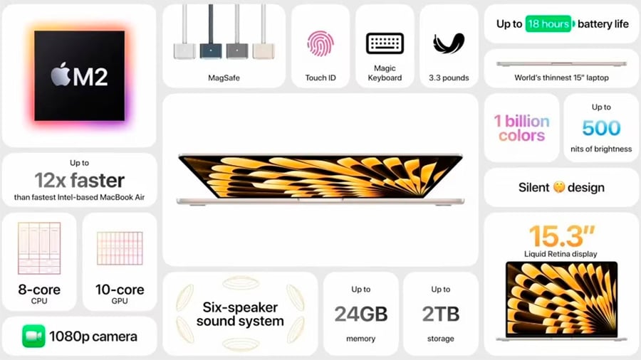 La presentación de las nuevas Mac de Apple estuvo a cargo de la vicepresidenta de producto, Kate Bergeron, quien explicó a detalle el nuevo Macbook Air de 15 pulgadas con los nuevos chips procesadores M2.