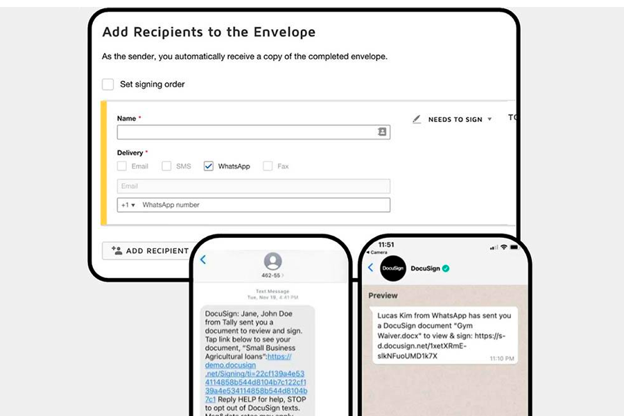 WhatsApp Delibery estará disponible como un servicio complementario para clientes del plan estándar o Business Pro de DocuSign, formando parte de su oferta de entrega multicanal.