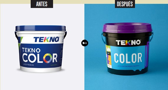 La marca de pinturas peruanas Tekno con más de 50 años en el mercado hasta hace un tiempo desarrollaba campañas consecutivas para una recordación, ahora después de un estancamiento y mínima innovación comunicacional, ha relanzado la marca con un nuevo concepto “más colores, más bonitos” con la asesoría de la agencia Brandlab, la que se encargó de las modificaciones en los diseños tanto de isotipo como colores y presentaciones el envase.