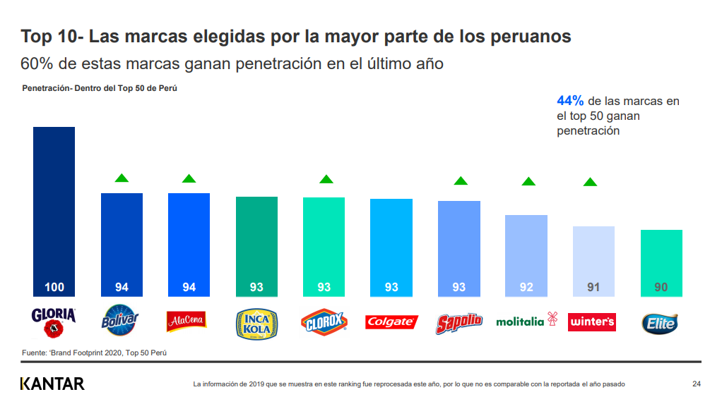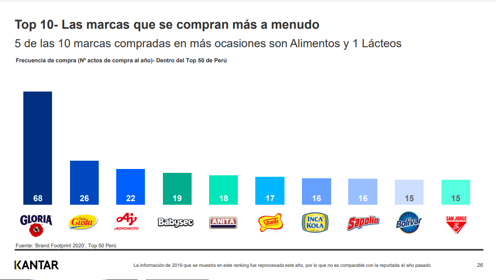 La consultora Kantar división Worldpanel presentó su estudio Ranking Brand Footprint Perú en el cual presentó las tendencias de consumo en el país en 2020 así como el ranking de marcas más elegidas en ese período.