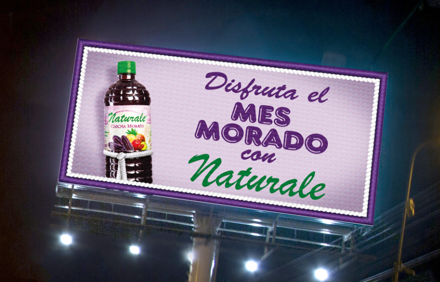 Naturale, la marca de chicha morada más vendida en Supermercados y Grifos en Lima (Fuente: CCR), luce en las calles de la capital su campaña Out of Home (OOH) con distintas gráficas para celebrar el mes morado.