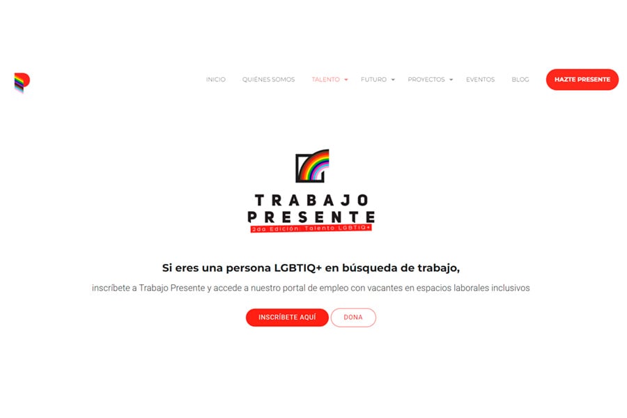 «Este mes de junio hemos inaugurado la segunda edición de ‘Trabajo Presente’, que incluye a toda la diversidad LGBTIQ+. Contamos con un portal de empleo para talento LGBTIQ+, en el cual se publica oportunidades laborales de empresas que cuentan con la Certificación Presente. También, brindamos con un programa de empleabilidad para talento trans y no binarie», señala la ONG.