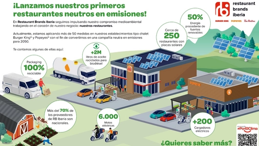 Desde 2019, el grupo Restaurants Brands Iberia, propietario de Burger King y Popeyes, ha desarrollado diversos proyectos de sostenibilidad. Más de 400 establecimientos Free Standing del grupo incorporan sistemas, diseños y materiales sostenibles. Gracias a su adhesión a la iniciativa #PorElClima, la compañía está midiendo el impacto de estas técnicas en todo el sistema.