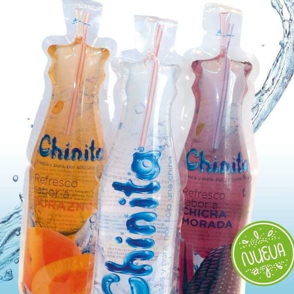 La compañía Inkas Natural Treasures S.A.C. lanzó hace algunos meses un producto con un empaque innovador. Se trata de “Chinita” la nueva línea de agua de mesa y refrescos que no utiliza botellas, sino un plástico protector con el grosor necesario para mantener el líquido en buen estado.