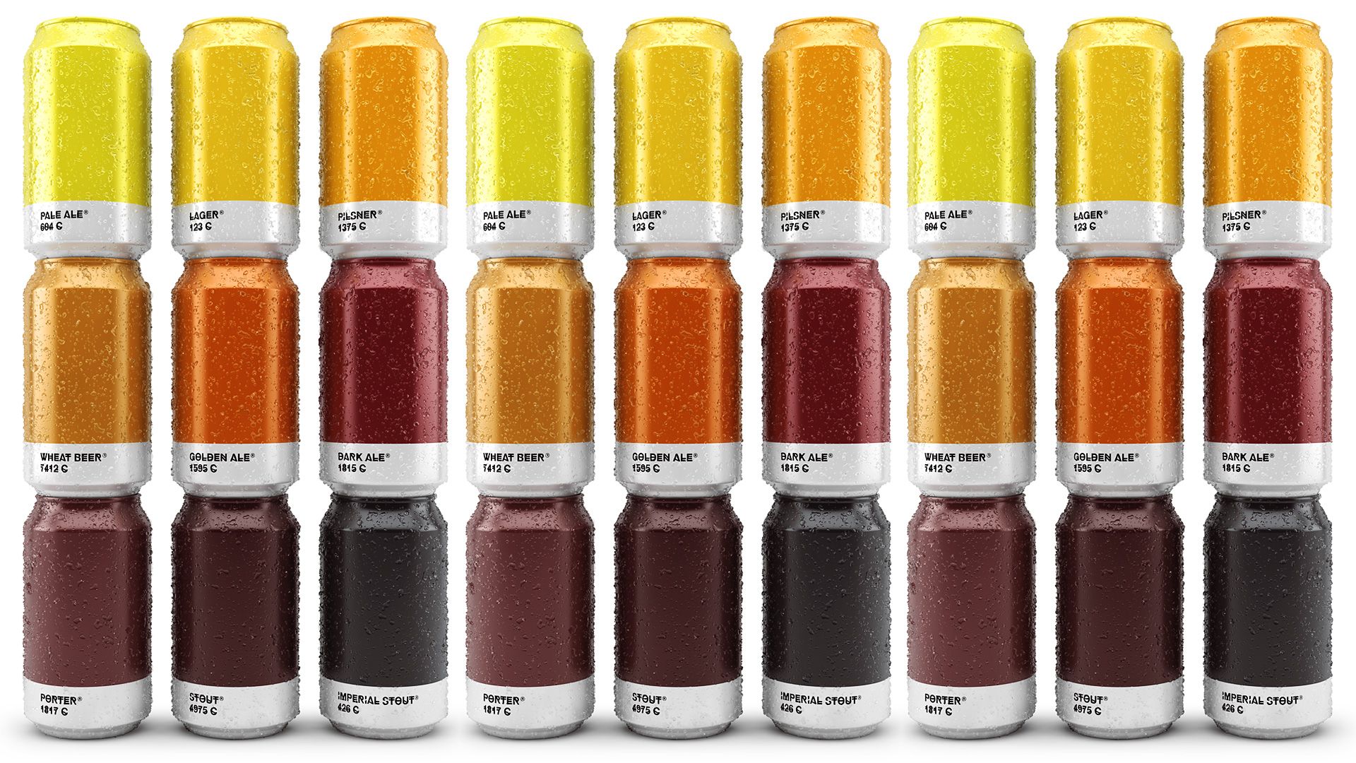 Uno de los trabajos que antecede a este proyecto, pero que guarda gran similitud es Beer Colors. Para este diseño, Txaber también usa el tan famoso y querido sistema de codificación de colores Pantone, y de esta forma consigue emparejar el tono de cada bebida con un número Pantone asignado. Así, por ejemplo, Pale Ale con 604 C e Imperial Stout con 426 C. De esta manera, cada recipiente, lata o botella, se convierte en un indicador de lo que contiene.