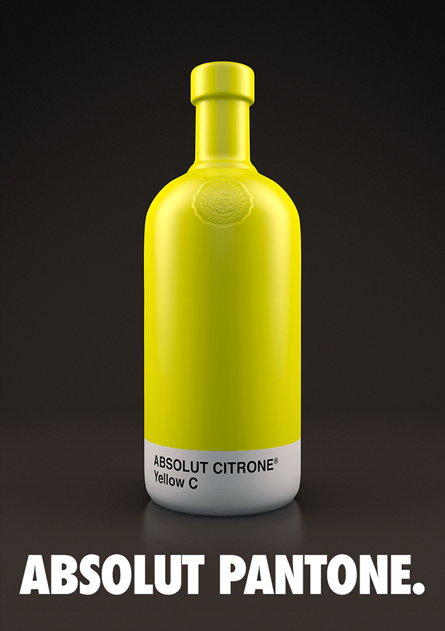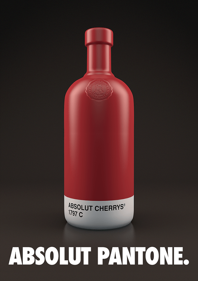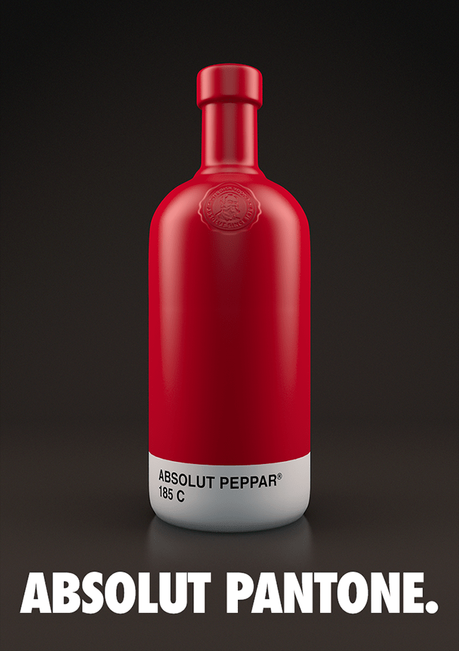 En esta ocasión, el diseñador español Txaber ha desarrollado un nuevo proyecto en el cual toma como inspiración las botellas de la marca Absolut Vodka y los colores Pantone y logra crear una relación directa entre el producto y su color. Cada botella tiene un color Pantone único que representa el sabor de la bebida, especialmente los sabores de frutas.